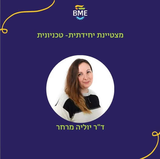ברכות חמות לרגל זכייתה של ד״ר יוליה מרחר כמצטיינת יחידתית-טכניונית.